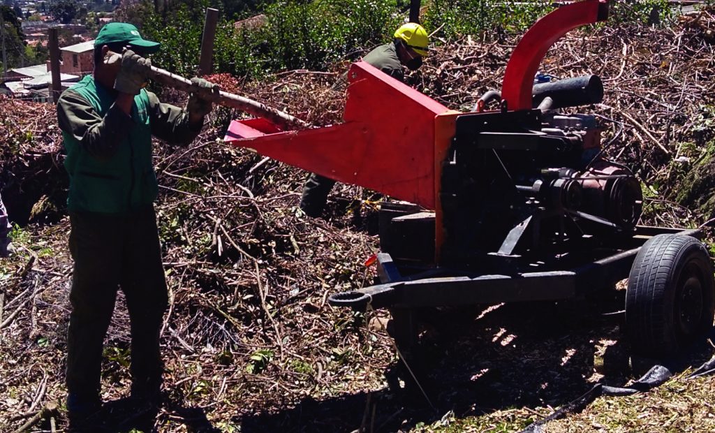 • Con el ánimo de contribuir al cuidado del medio ambiente el material orgánico que surge de talas y/o aprovechamiento forestal, mantenimientos y podas de árboles es chipeado para uso como abono orgánico.